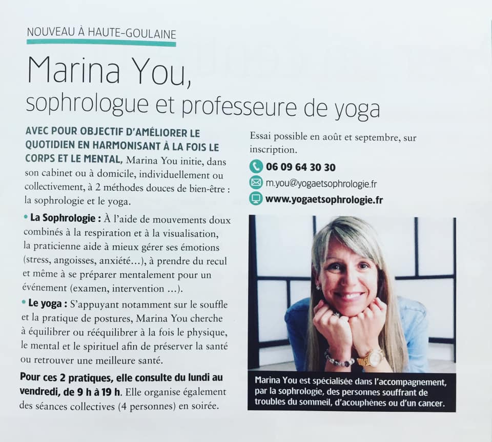 J’ai le plaisir de partager, ci-dessous, l’article dont j’ai bénéficié dans le magazine d’informations municipales, Vivre à Haute Goulaine, de juillet-août 2019 pour le lancement de mon activité en sophrologie et en yoga.